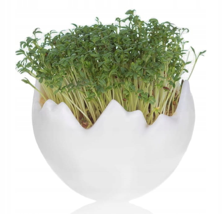 Wyjątkowy produkt w kształcie jajka wykonany z alabastru, w komplecie razem z watą i nasionkami rzeżuchy. Rzeżucha jest wyjątkową rośliną kojarzoną z Wielkanocą, jej symbolika dotyczy przemiany i odrodzenia związanego z Wielkanocą i przyrodą. Zima ustępuje miejsca wiośnie, dzięki czemu wszystko zakwita i odżywa na nowo. Produkt zapakowany w folię.