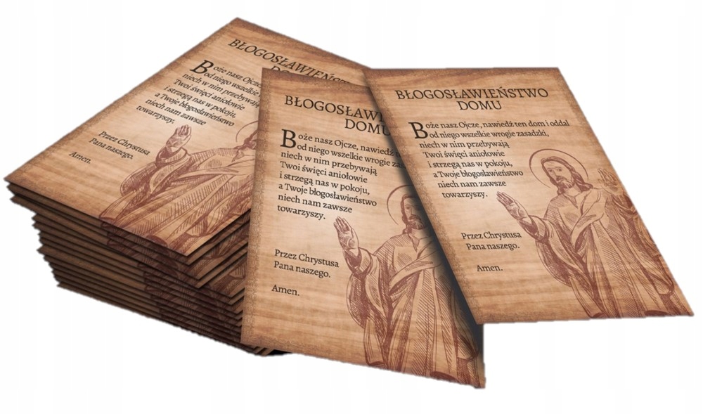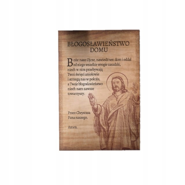 "Boże, nasz Ojcze, nawiedź ten dom i oddal od niego wszelkie wrogie zasadzki, niech w nim przebywają Twoi święci aniołowie i strzegą nas w pokoju, a Twoje błogosławieństwo niech nam zawsze towarzyszy.