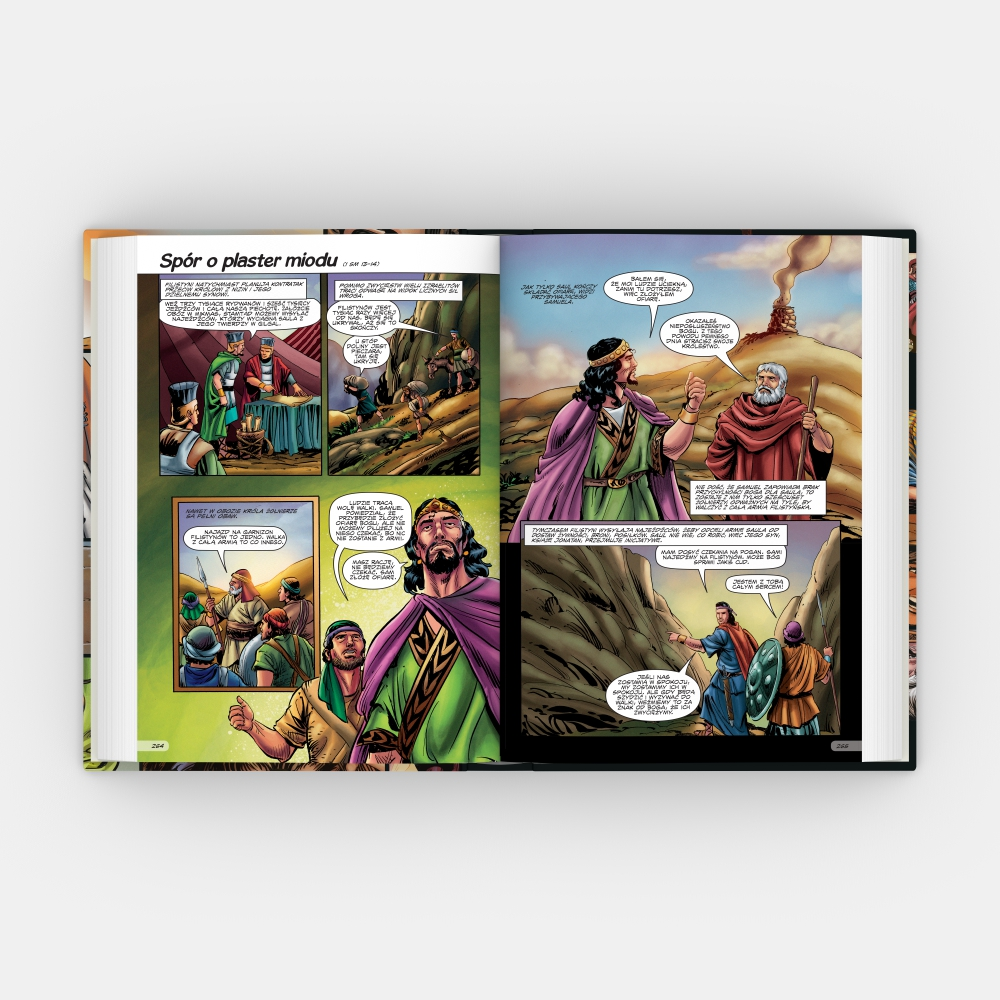 Biblia. Komiks to wyjątkowa interpretacja kluczowych historii biblijnych w formie dynamicznego komiksu. Dzięki połączeniu klasycznej treści z nowoczesnym stylem rysunkowym, czytelnicy mogą przeżyć te niezwykłe opowieści w zupełnie odmienny sposób. Dodatkowe 128 stron wzbogacająca treść sprawia, że każda strona to pełen emocji i głębokiej refleksji przeżycie. Dodatkowo, obecność Imprimatur Kościoła Katolickiego gwarantuje autentyczność i aprobatę dla treści biblijnych przedstawionych w komiksie. Odkryj nowe oblicze Biblii w formie wyjątkowego komiksu dostosowanego do czytelników w każdym wieku.