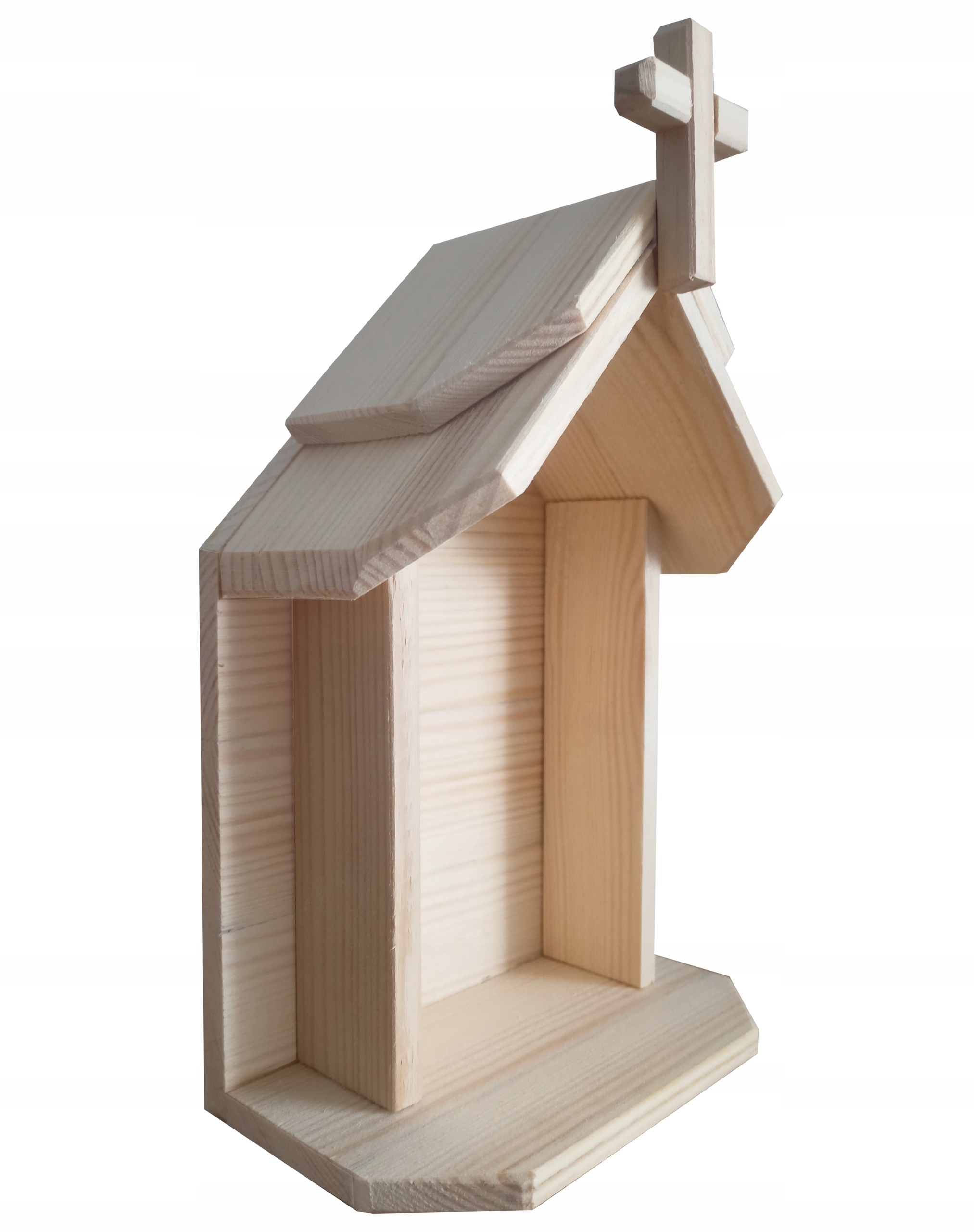 Kapliczka do zawieszenia lub postawienia w kolorze jasnego drewna.