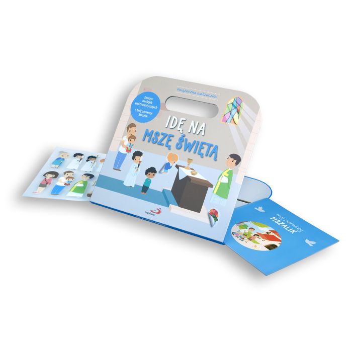 "Idę na Mszę Świętą - książeczka walizeczka" to doskonałe narzędzie, które wprowadzi najmłodszych w świat Mszy Świętej, zachęcając ich do aktywnego i świadomego uczestnictwa. Zestaw stanowi wyjątkową pomoc dydaktyczną, składającą się z "Małego Mszalika", 16-stronicowej książeczki, która w przystępny sposób przedstawia kluczowe etapy Mszy. Dołączona plansza wnętrza kościoła oraz zestaw elektrostatycznych naklejek wielokrotnego użytku, przedstawiających postacie i przedmioty związane z liturgią, pozwala dziecku angażować się w zabawę, jednocześnie ucząc się.