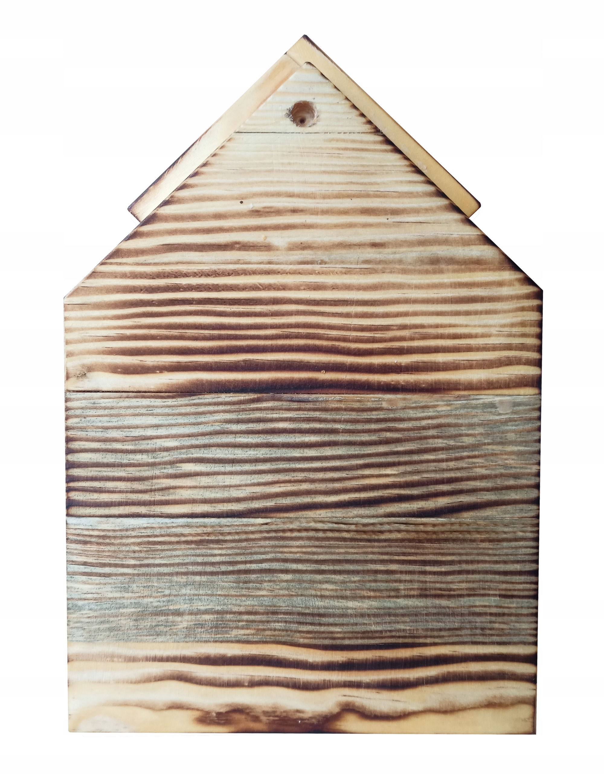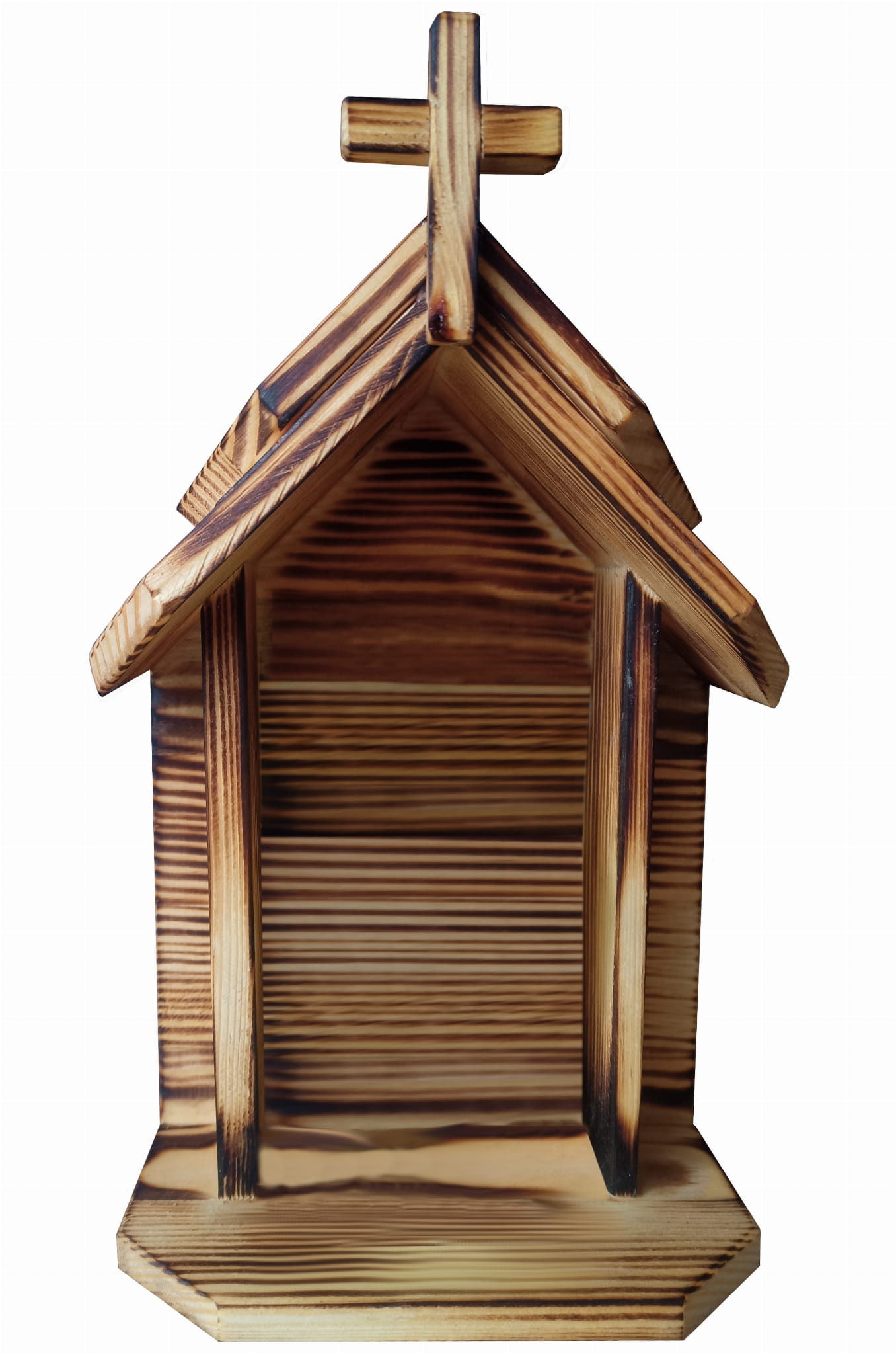 Kapliczka do zawieszenia lub postawienia z przypalanego drewna .