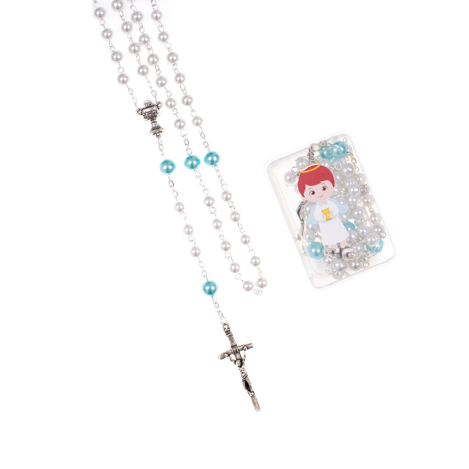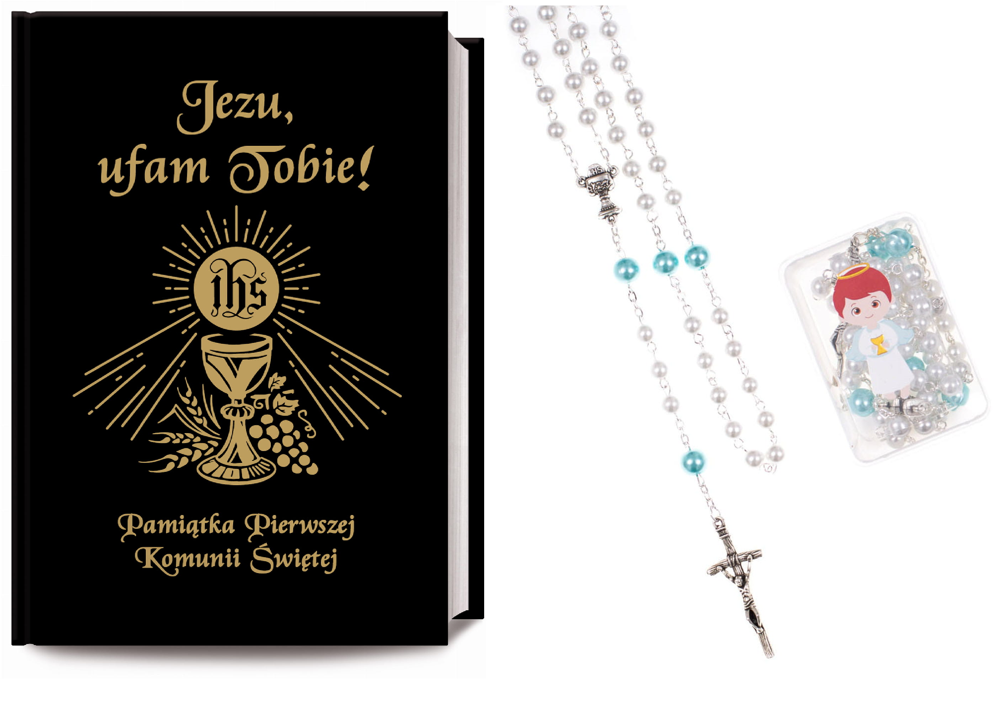 Komplet komunijny Modlitewnik + różaniec w etui dla chłopca
