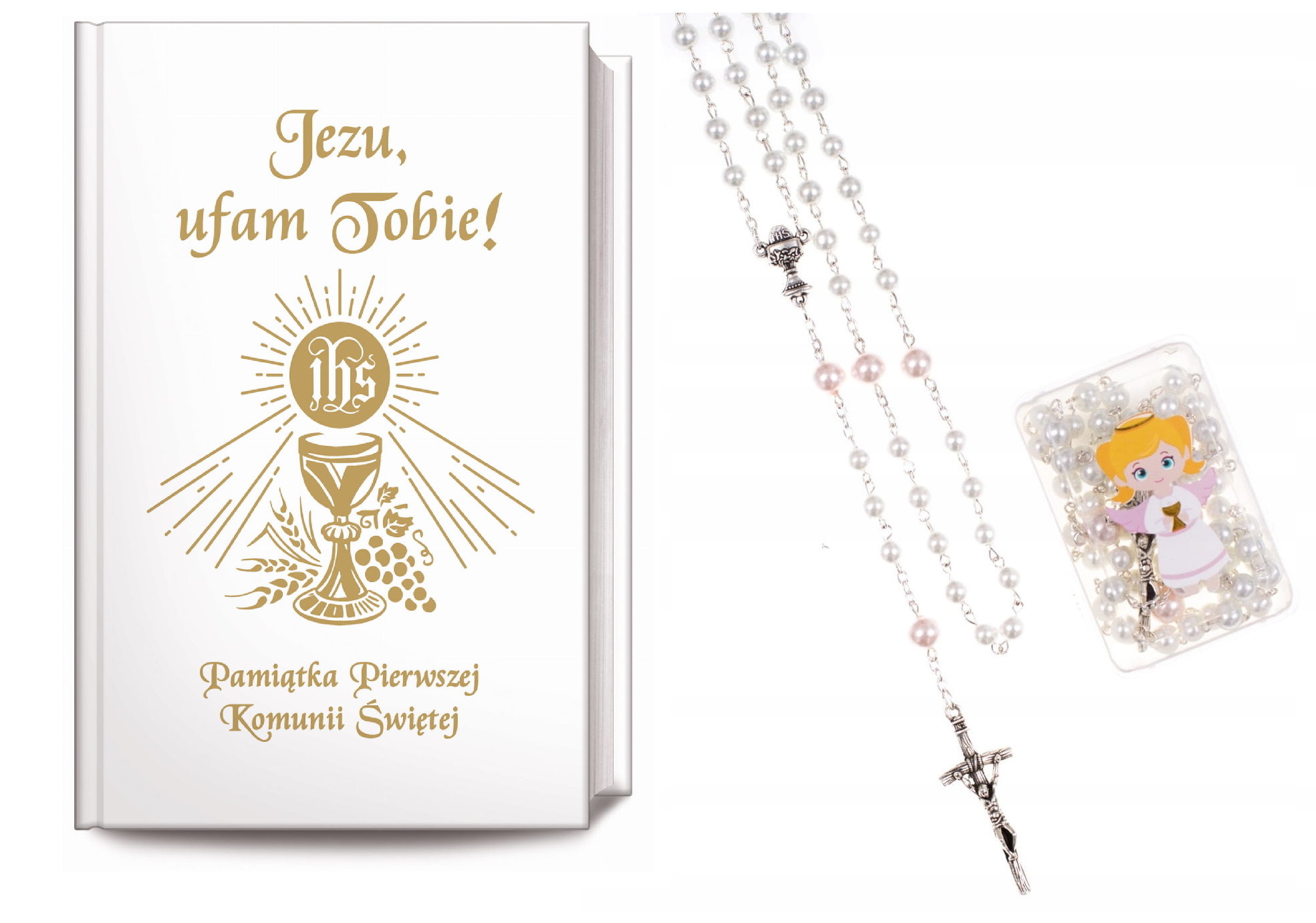 Zestaw komunijny Modlitewnik + Różaniec w etui dla dziewczynki