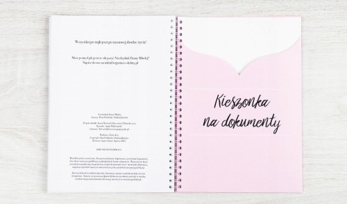 kieszonka, która pozwoli Ci przechować w jednym miejscu wszystkie zebrane dokumenty, ulotki, wizytówki, umowy, próbki zaproszeń itp.