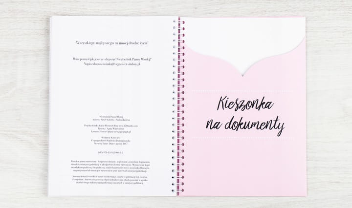 kieszonka, która pozwoli Ci przechować w jednym miejscu wszystkie zebrane dokumenty, ulotki, wizytówki, umowy, próbki zaproszeń itp.