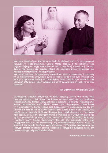 Kochane Urzekające, Pan Bóg w Fatimie objawił nam, że przygotował ratunek w Niepokalanym Sercu Matki Bożej, a ta książka jest najpiękniejszym przygotowaniem do aktu osobistej konsekracji Temuż Sercu. Nie bójmy się przyjąć Maryi do naszego życia, zwłaszcza do naszego małżeństwa i naszej rodziny.