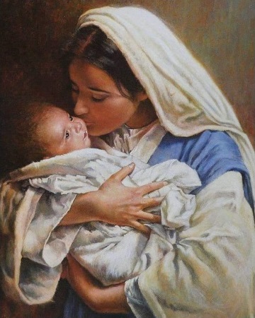 Całując oblicze Boga - tak nazywa się ten piękny obraz przedstawiający Matkę Bożą trzymającą w ramionach Jezusa. Dziecko w rękach Maryi jest też symbolem każdego z nas. Na twarzy dziecka odbija się światło. Maryja tak trzyma dziecko, aby wpatrywało się w Boga. Na tym polega Jej rola: nie skupia uwagi dziecka na sobie, lecz pomaga skierować ją ku Bogu.