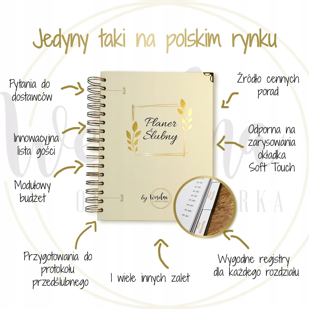 Twórca Planera Ślubny postawiła nie tylko na to, by wysycić go maksymalnie wiedzą, ale też zmienić go w ozdobę i pamiątkę na lata. Dlatego planer jest w twardej okładce ze złotymi zdobieniami. Na jego kartach wspólnie napiszecie swoją historię. Nieważne czy od ślubu upłynie 5, 10, a nawet 20 lat. Wystarczy, że otworzycie swój planer i znowu przeniesiecie się do tych magicznych chwil.
