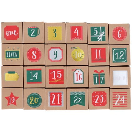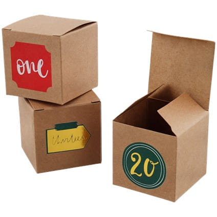 Przy pomocy wesołych pudełek z kartonu kraft przygotujesz kalendarz adwentowy z upominkami.