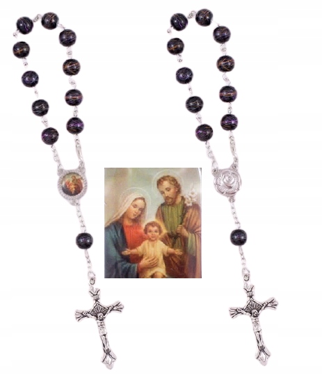 Różaniec do samochodu z dwustronnym medalikiem - z wizerunkiem Świętej Rodziny.