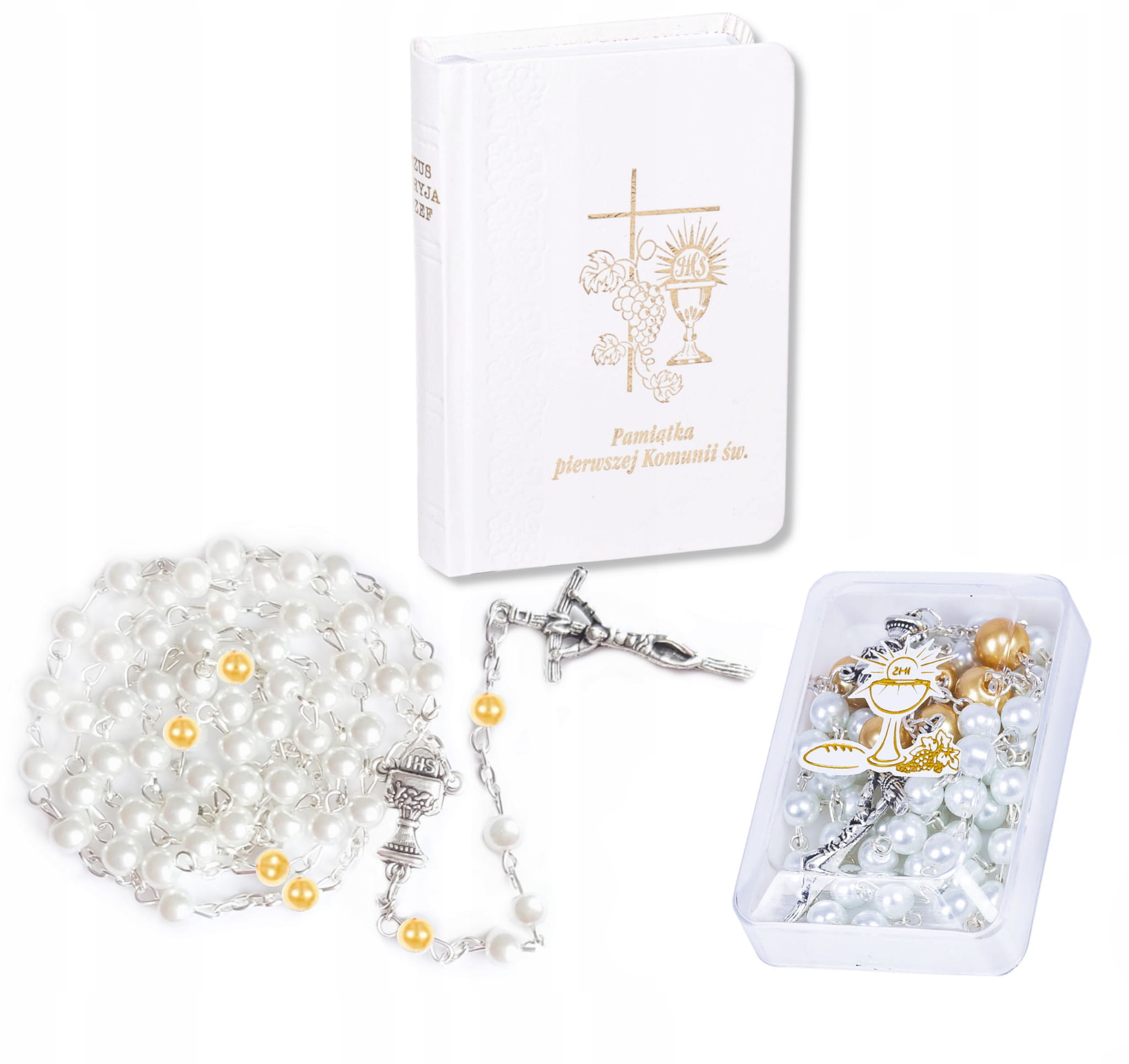 Zestaw różaniec komunijny z książeczką "Jezus, Maryja, Józef"