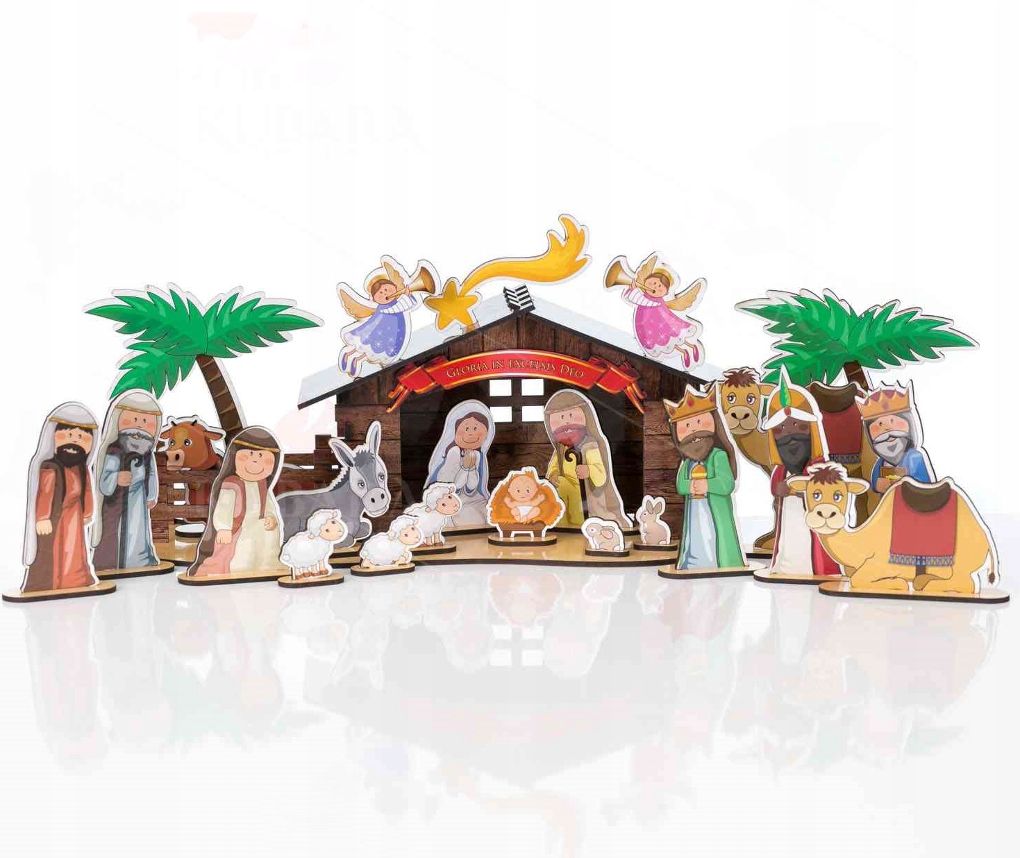 Szopka drewniana z postaciami i zwierzątkami - 53 elementy