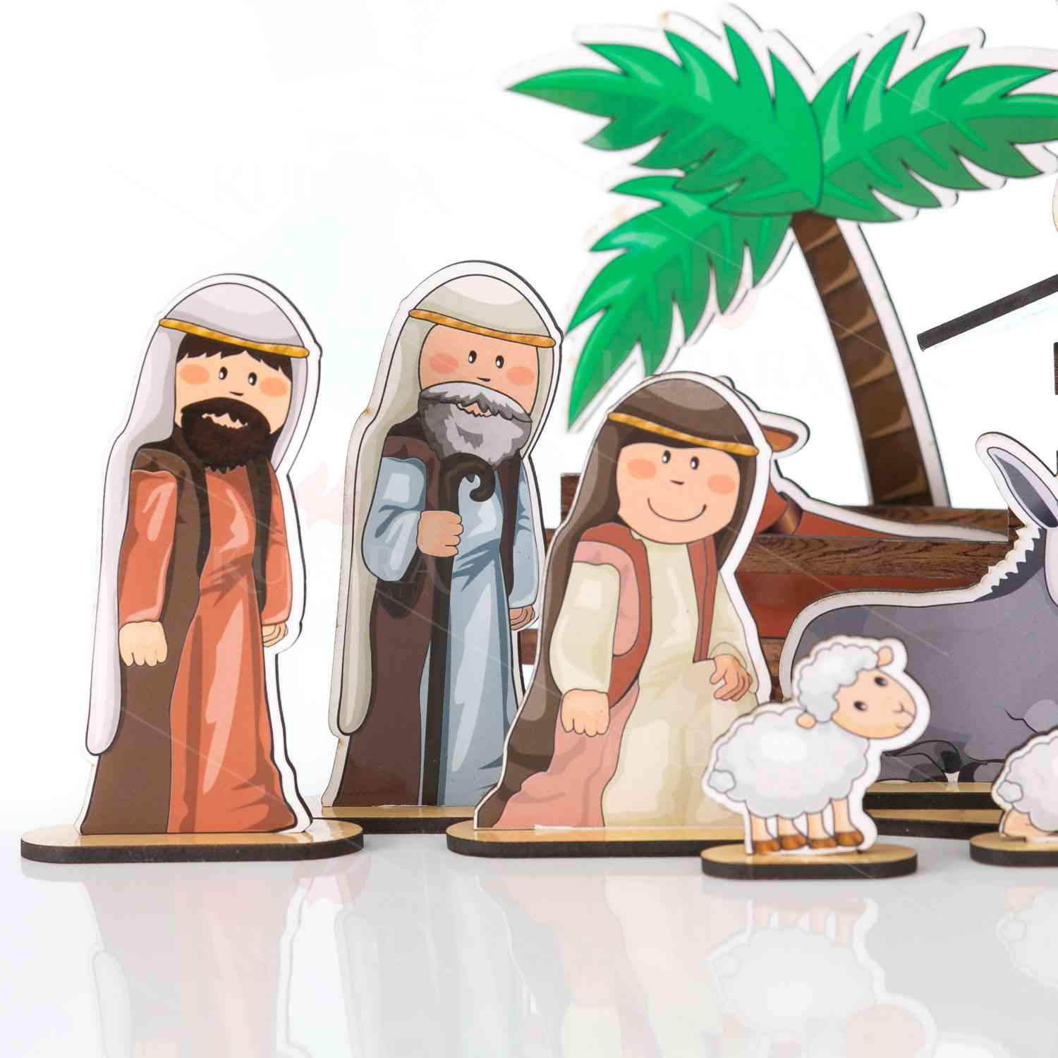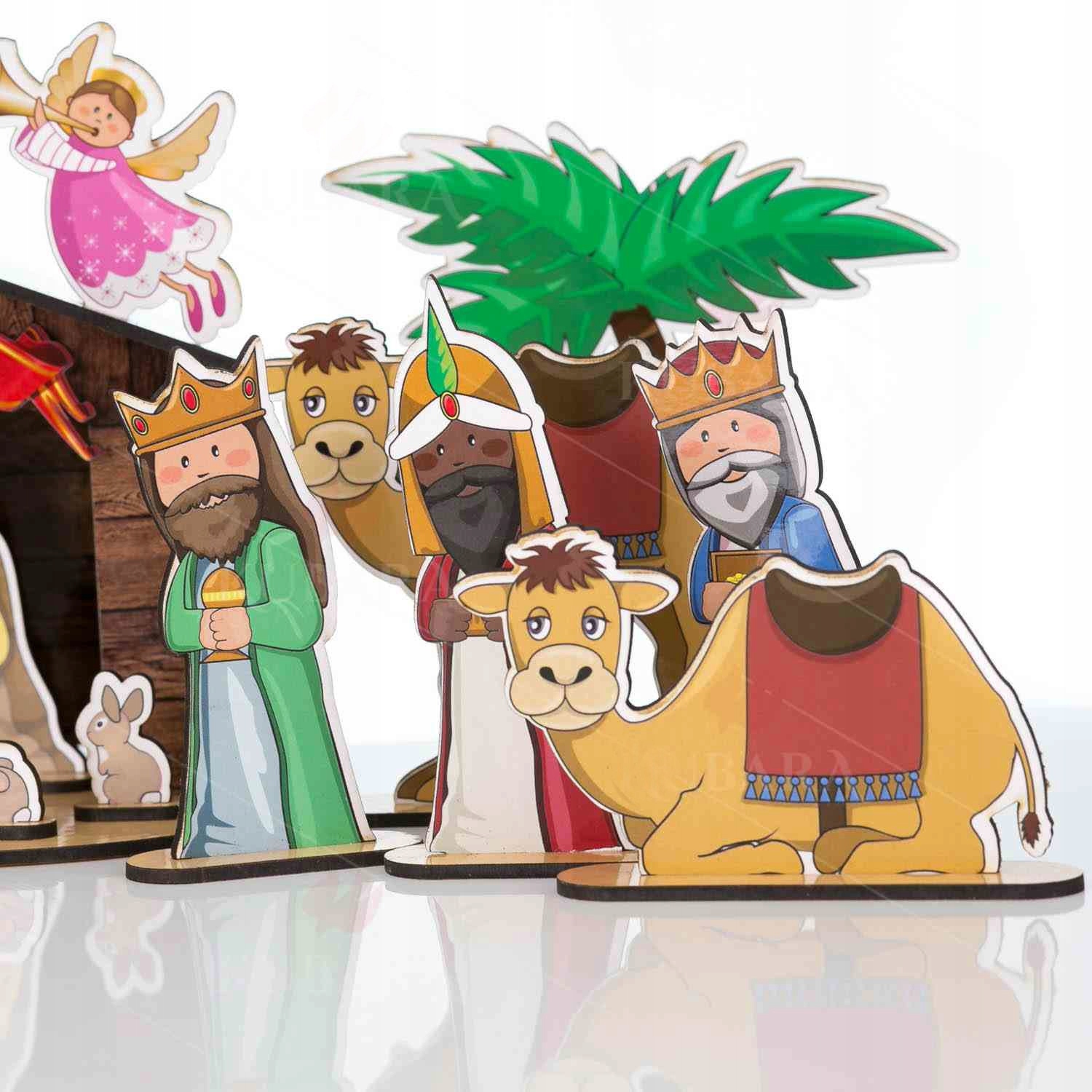 Składanie szopki razem z dziećmi jest możliwe dzięki przejrzystej instrukcji. Czas spędzony na tym zajęciu będzie także doskonałą okazją do przybliżenia najmłodszym istoty świąt Bożego Narodzenia i wprowadzenia ich w chrześcijańskie przeżywanie tych wyjątkowych dni. Szopka została wykonana z drewna o grubości 3 mm, dzięki czemu jest zarazem trwała, jak i subtelna w swoim wyglądzie. Pięknie prezentuje się na stole jak i pod choinką. Zestaw składa się z 53 części, a po złożeniu osiąga wymiary : 20 cm długości, 8 cm szerokości i 11 cm wysokości. W szopce – oprócz Świętej Rodziny – znajdują się wszystkie kluczowe postacie i zwierzęta biblijne, które według przekazu ewangelistów były świadkami cudu narodzenia Jezusa. Postać Józefa mierzy 7 cm wysokości, natomiast Królowie mają po 8,5 cm wysokości.