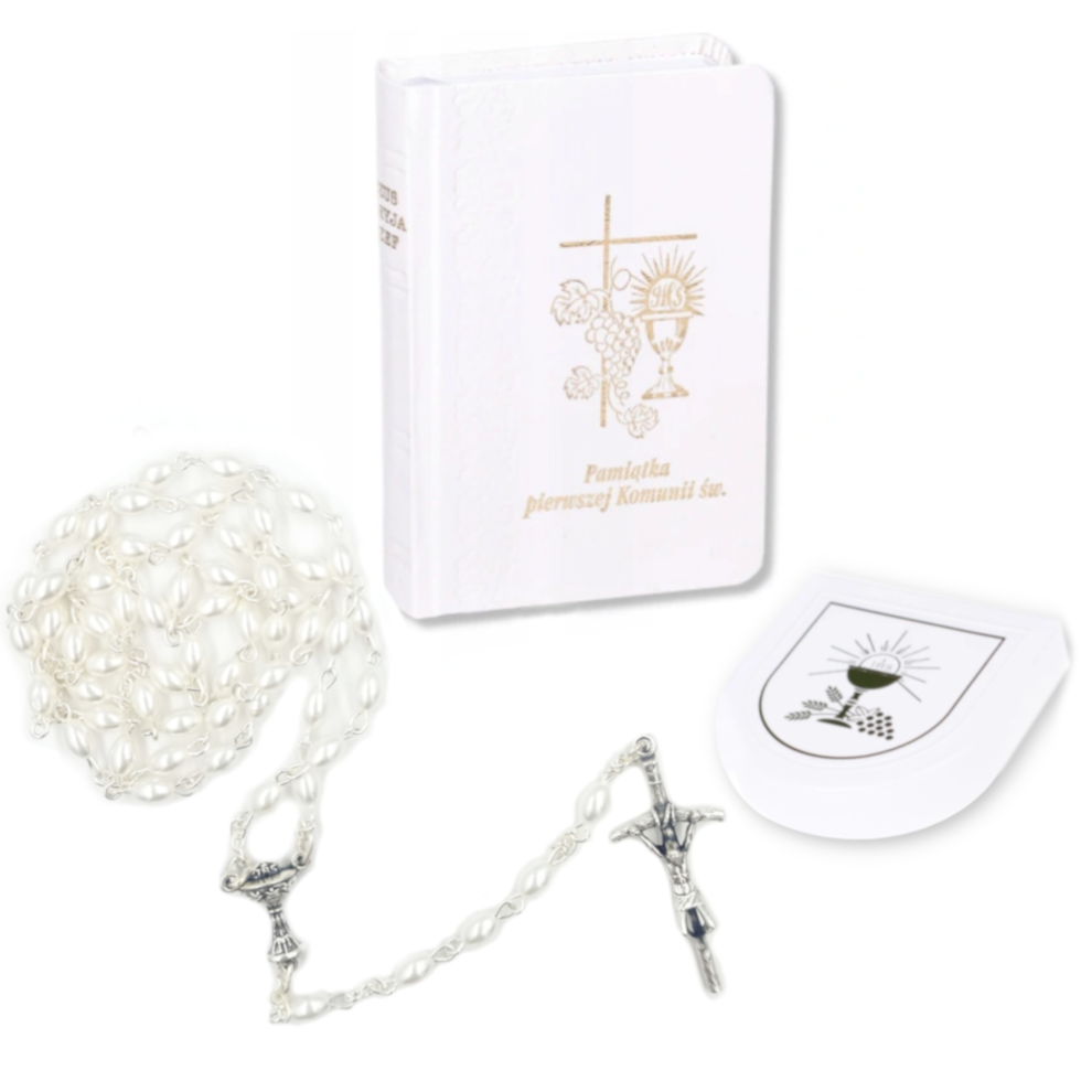 Zestaw różaniec komunijny z książeczką "Jezus, Maryja, Józef"